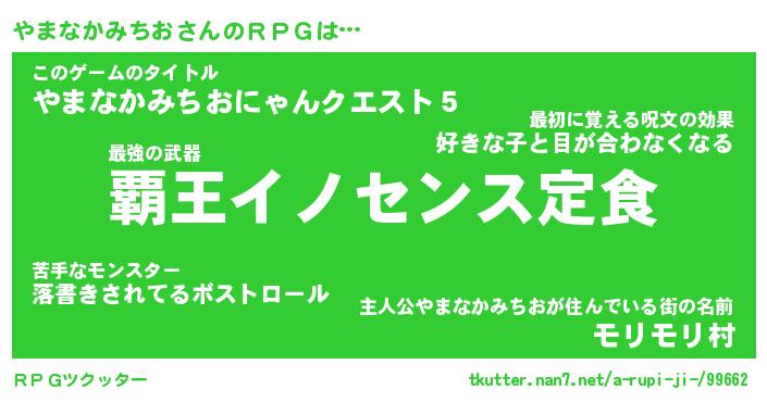 | 伝説のあだ名 | 『封印されしスナイパーやまなかみちお』 |