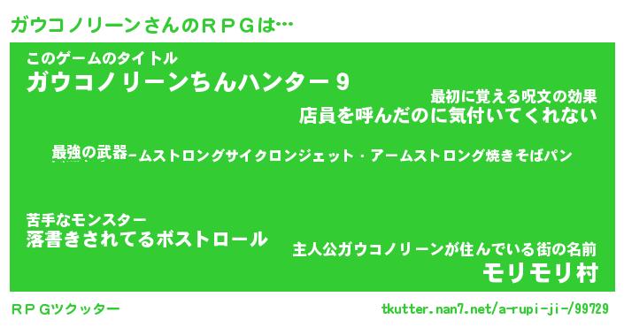 | 男性向けラノベタイトル風あだ名 | 『ガウコノリーンアートオンライン』 |