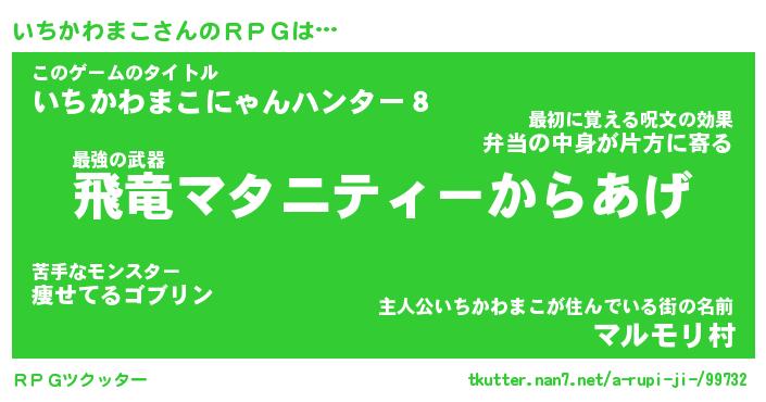 | 男性向けラノベタイトル風あだ名 | 『イチカワマコアートオンライン』 |