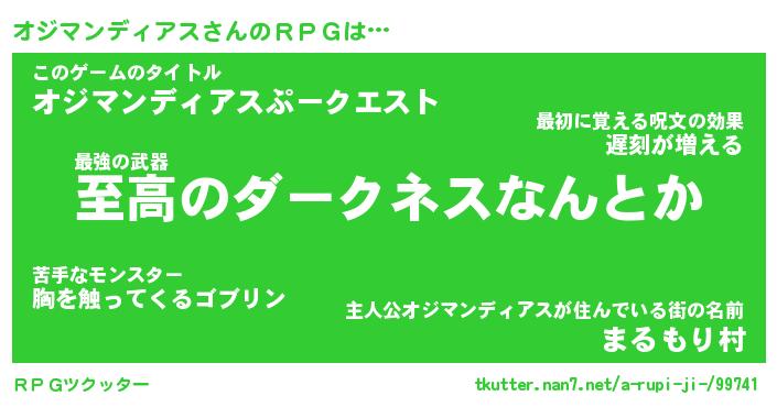 | 男性向けラノベタイトル風あだ名 | 『オジマンディアスアートオンライン』 |