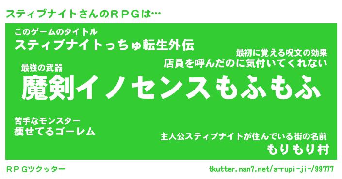 | 胡散臭い通販商品みたいなあだ名 | 『必ず成功する霊験あらたかなお札…その名も「スティブナイト」』 |