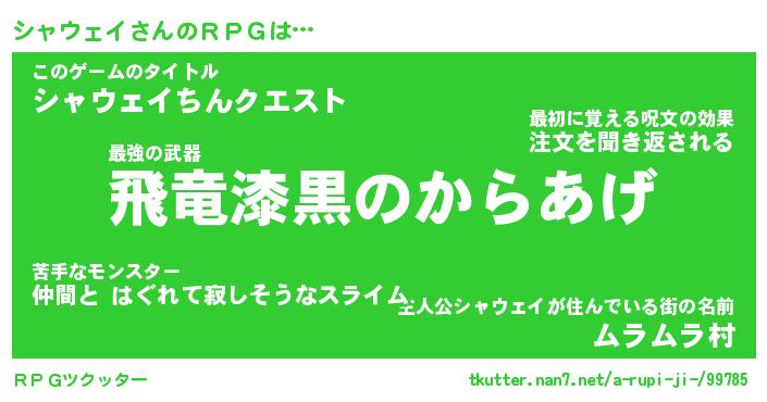 | ファンタジー風あだ名 | 『シャフェル』『エターナルシャウェイー』 |
