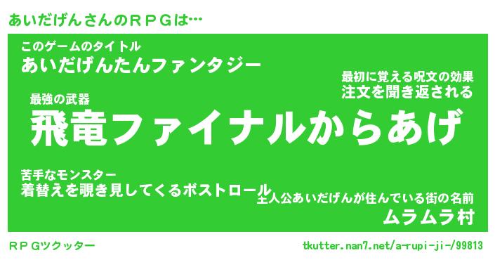 | 伝説のあだ名 | 『封印されし竜騎士あいだげん』 |