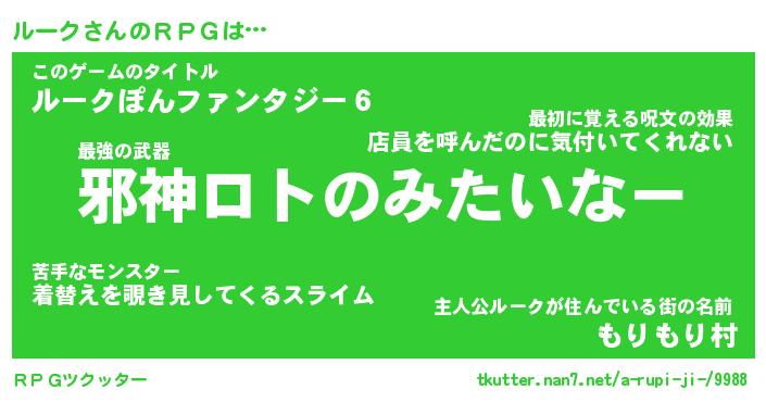 | ヘコむあだ名 | 『ルーふぇ~』『豆乳』『ルーっちょ』 |