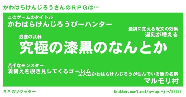 | 男性向けラノベタイトル風あだ名 | 『カワハラケンジロウアートオンライン』 |