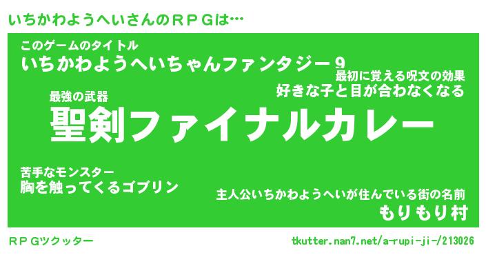 | 男性向けラノベタイトル風あだ名 | 『いちかわようへいの憂鬱』 |