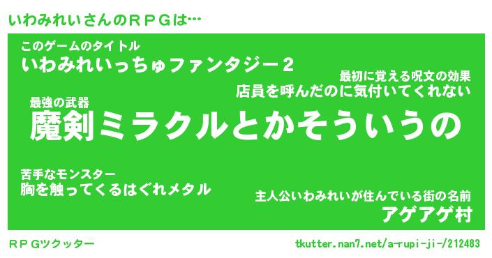 | ファンタジー風あだ名 | 『イワフェル』『エターナルイワミレイー』 |