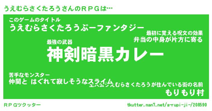 | 男性向けラノベタイトル風あだ名 | 『うえむらさくたろうの憂鬱』 |