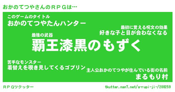 | 男性向けラノベタイトル風あだ名 | 『オカノテツヤアートオンライン』 |