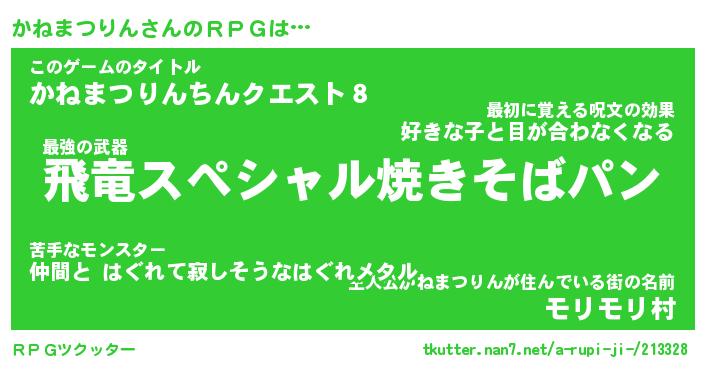 | 男性向けラノベタイトル風あだ名 | 『カネマツリンアートオンライン』 |