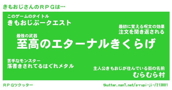 | ファンタジー風あだ名 | 『キモフェル』『エターナルキモオジー』 |