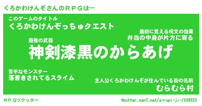 | 胡散臭い通販商品みたいなあだ名 | 『モテモテ間違いなし霊験あらたかなお札…その名も「くろかわけんぞ」』 |