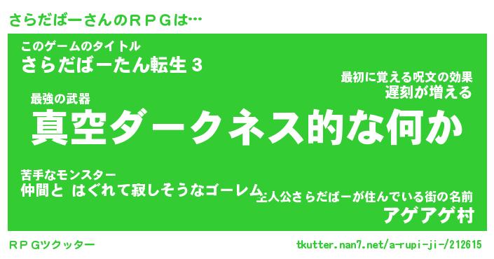 | 伝説のあだ名 | 『封印されし傭兵さらだばー』 |
