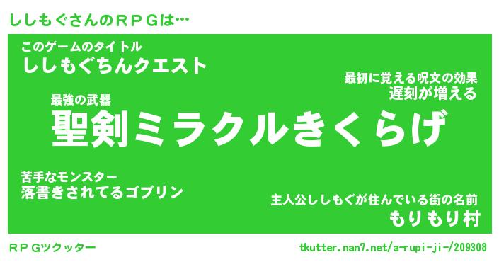 | ヒーロー風カッコイイあだ名 | 『スーパーシシモグ』『銀牙騎士シシ』 |