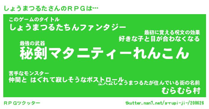 | 伝説のあだ名 | 『伝説のスナイパーしょうまつるた』 |