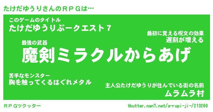 | 伝説のあだ名 | 『伝説の竜騎士たけだゆうり』 |