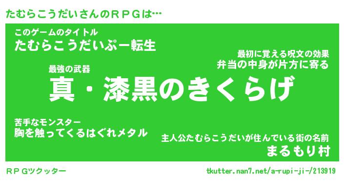 | 男性向けラノベタイトル風あだ名 | 『タムラコウダイアートオンライン』 |