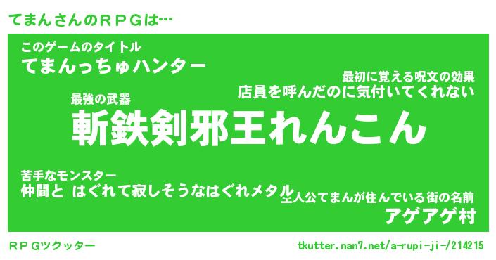 | 男性向けラノベタイトル風あだ名 | 『てまんの憂鬱』 |