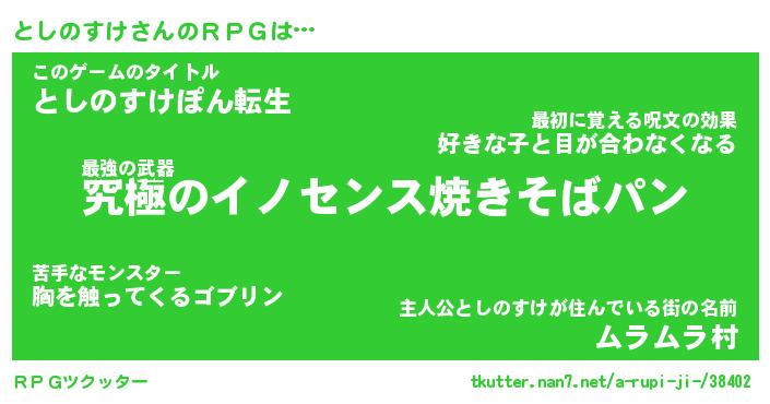 | 男性向けラノベタイトル風あだ名 | 『としのすけの憂鬱』 |