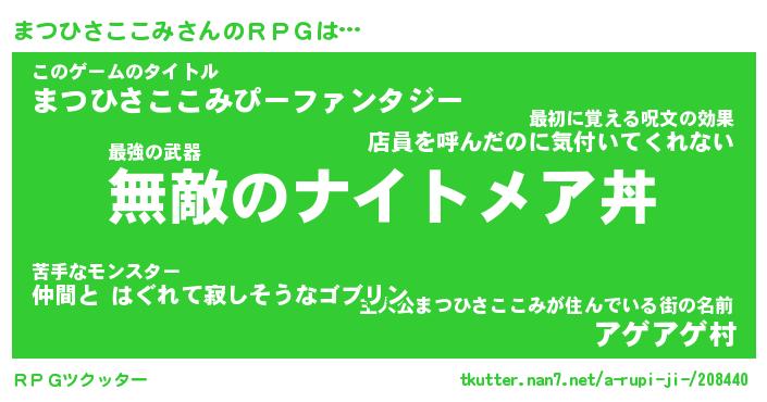 | 胡散臭い通販商品みたいなあだ名 | 『モテモテ間違いなし霊験あらたかなお札…その名も「まつひさここみ」』 |