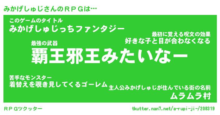 | 伝説のあだ名 | 『封印されし傭兵みかげしゅじ』 |