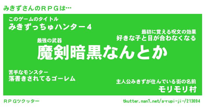 | 男性向けラノベタイトル風あだ名 | 『みきずの憂鬱』 |