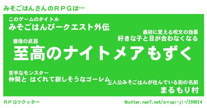 | 男性向けラノベタイトル風あだ名 | 『ミソゴハンアートオンライン』 |