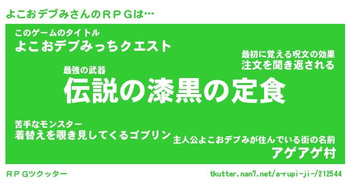 | 男性向けラノベタイトル風あだ名 | 『よこおデブみの憂鬱』 |