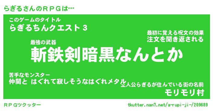 | 伝説のあだ名 | 『伝説の傭兵らぎる』『最古の忍者らぎる』 |
