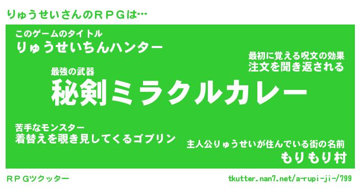 | 男性向けラノベタイトル風あだ名 | 『りゅうせいの憂鬱』 |