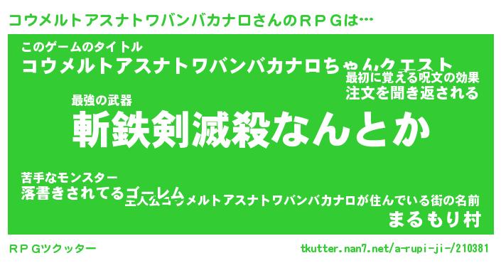 | ヒーロー風カッコイイあだ名 | 『スーパーコウメルトアスナトワバンバカナロ』 |