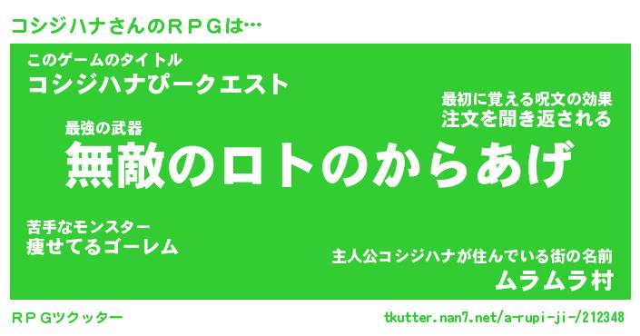 | 男性向けラノベタイトル風あだ名 | 『コシジハナアートオンライン』 |