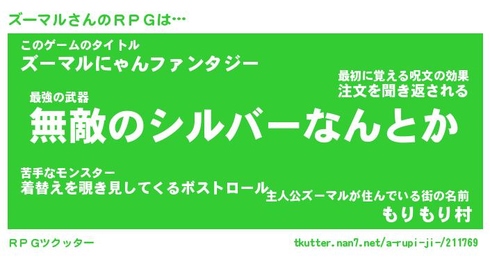| ファンタジー風あだ名 | 『ズーフェル』『エターナルズーマルー』 |