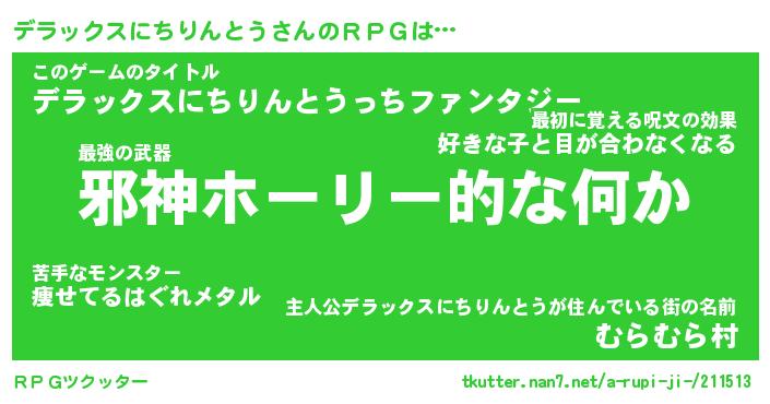 | 男性向けラノベタイトル風あだ名 | 『デラックスニチリントウアートオンライン』 |