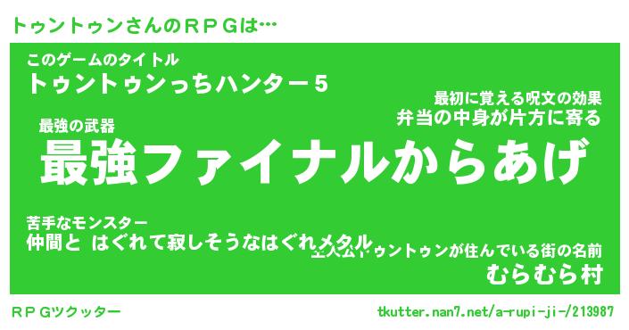 | 料理風あだ名 | 『節約★トゥントゥンと油揚げの玉子丼』 |