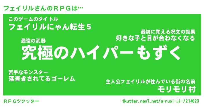 | ファンタジー風あだ名 | 『フェフェル』『エターナルフェイリルー』 |