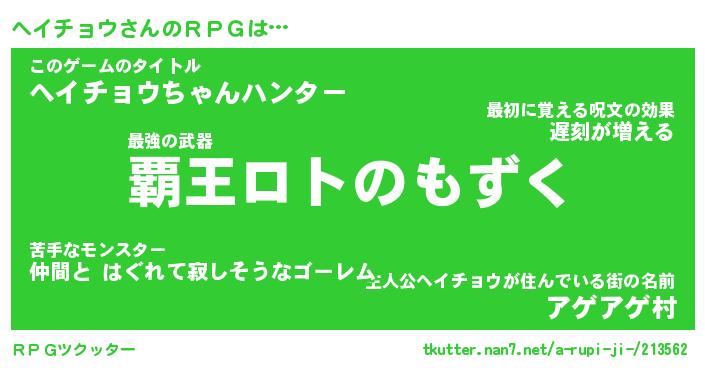 | 男性向けラノベタイトル風あだ名 | 『ヘイチョウアートオンライン』 |
