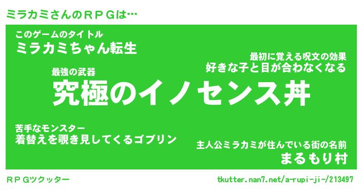 | 胡散臭い通販商品みたいなあだ名 | 『モテモテ間違いなし霊験あらたかなお札…その名も「ミラカミ」』 |