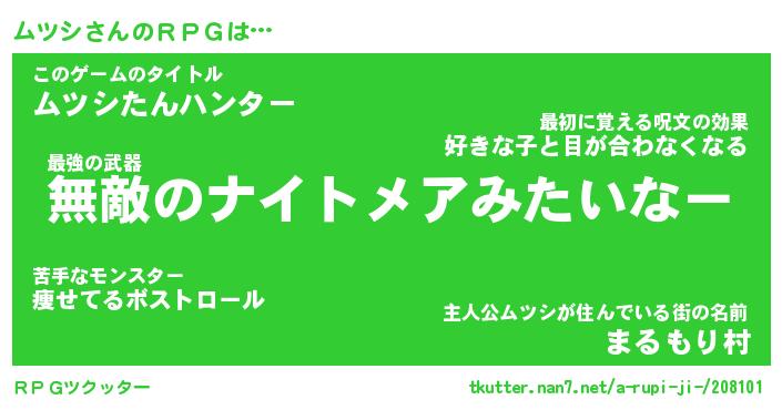 | 男性向けラノベタイトル風あだ名 | 『ムツシアートオンライン』 |
