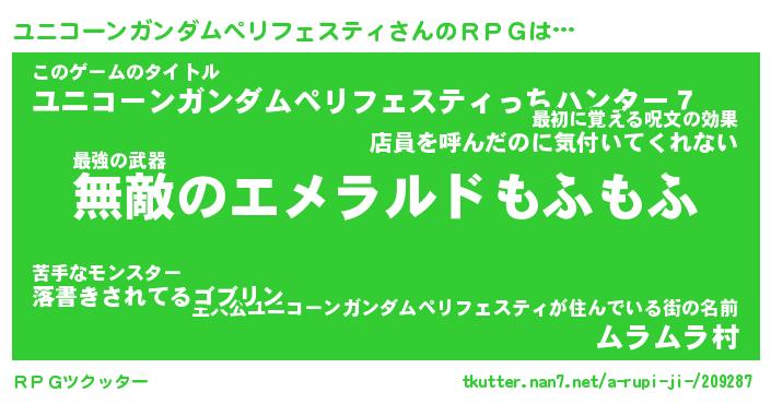| 意味不明あだ名 | 『ペロリンユニコーンガンダムペリフェスティ』 |