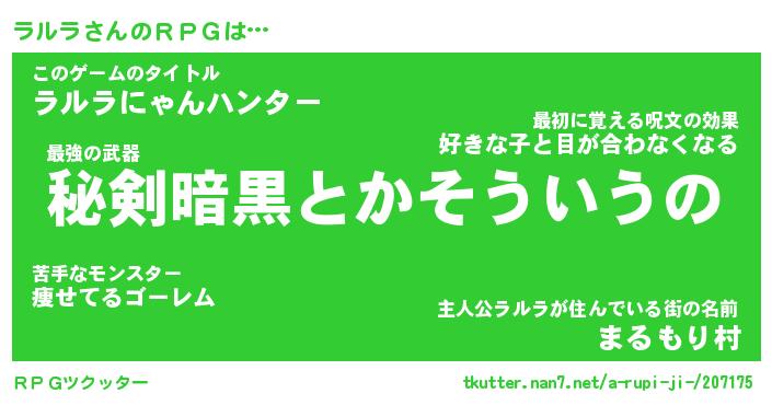 女子向けラノベタイトル風あだ名 | 『(仮)ラルラのやんごとなき事情』 |