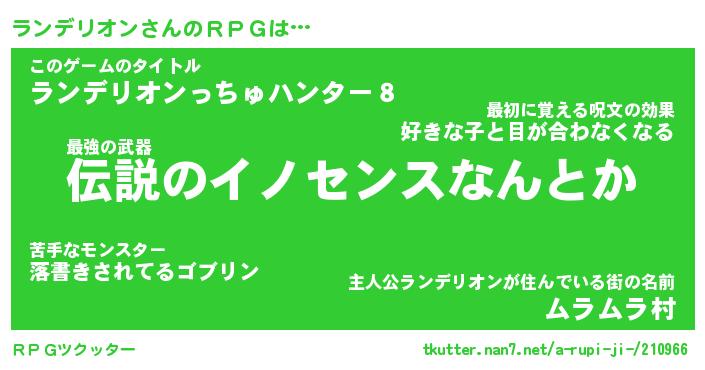 | 男性向けラノベタイトル風あだ名 | 『ランデリオンの憂鬱』 |