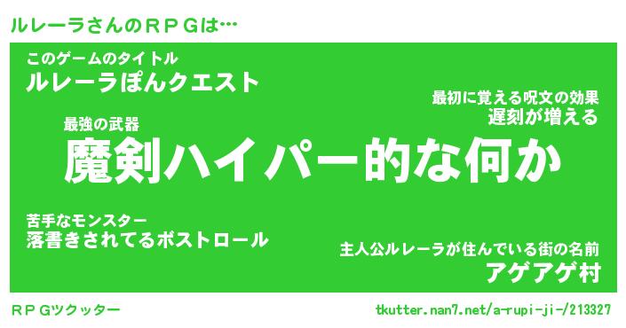 | 男性向けラノベタイトル風あだ名 | 『ルレーラの憂鬱』 |