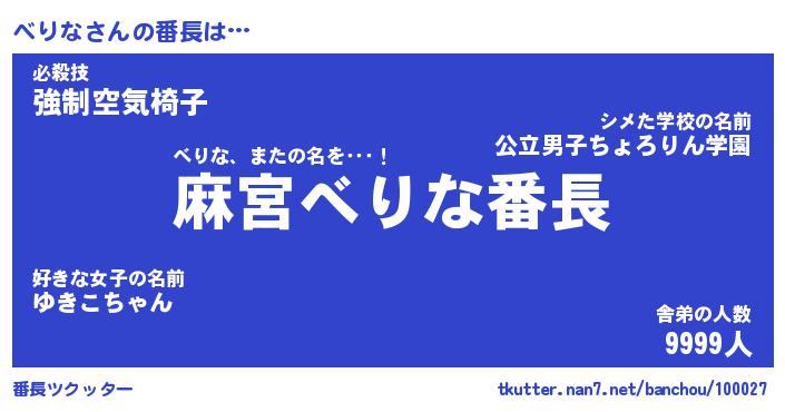| ヒーロー風カッコイイあだ名 | 『スーパーベリナ』『ウルトラべりなマン』 |