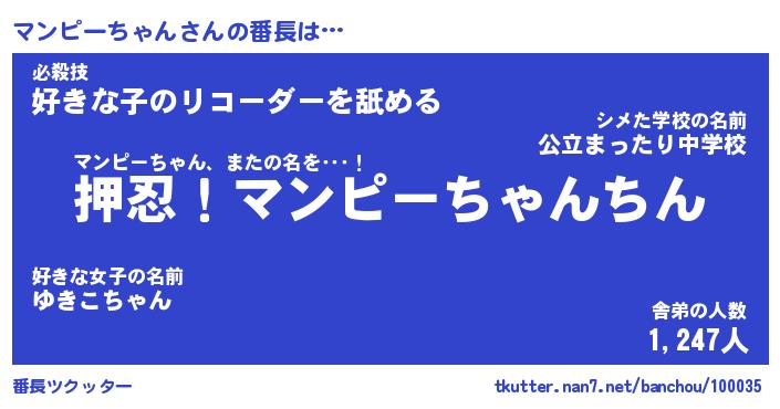 | 2回繰り返すあだ名 | 『マンマン』『ママンン』『ぬぷぬぷ』 |