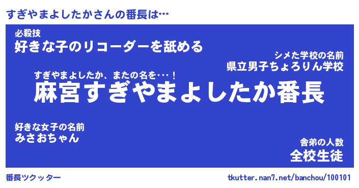 | ピコ太郎風あだ名 | 『スコ六郎』『ピス六郎』『スギ一郎』 |