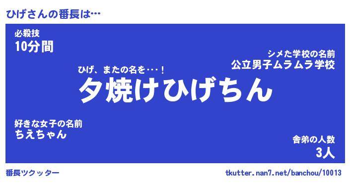 | ピコ太郎風あだ名 | 『ヒコ四郎』『ピヒ一郎』『ヒゲ次郎』 |