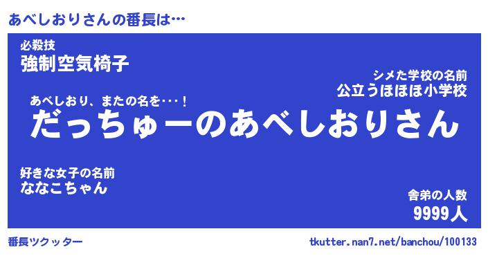 | 肩書あだ名 | 『あべしおり御曹司』『あべしおり班長』 |