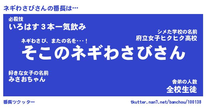 | ポケモン風あだ名 | 『ネギチュウ』『ネギワダネ』 |
