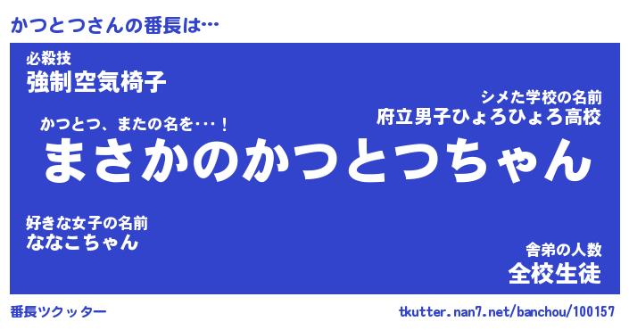 | 男性向けラノベタイトル風あだ名 | 『かつとつの憂鬱』 |